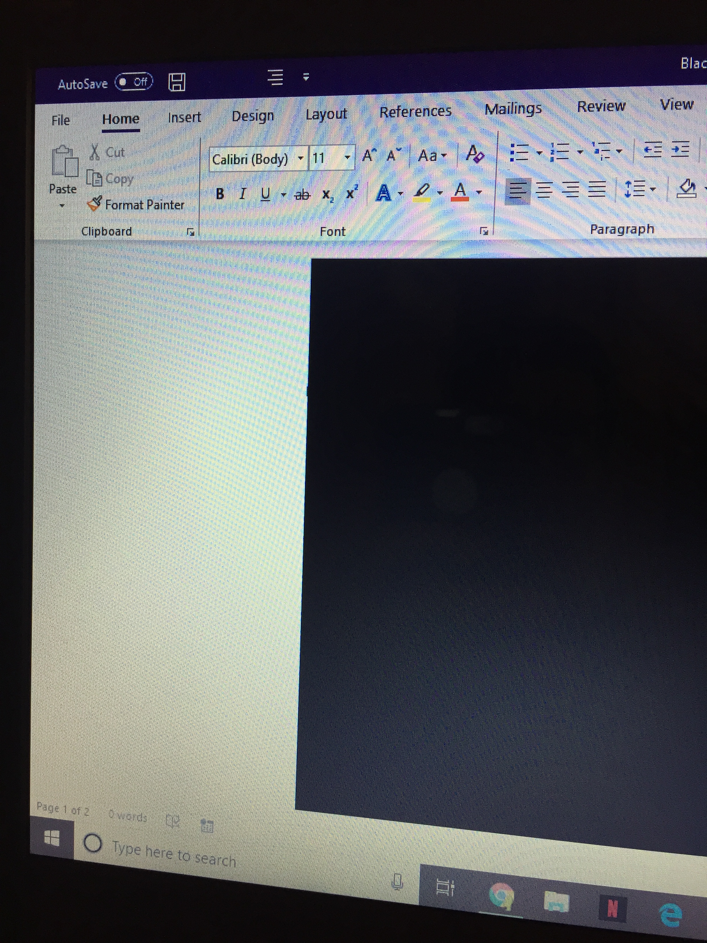 I inserted a rectangle into Microsoft Word late last night, making sure to look over my shoulder for any sort of government official looking to stop me. I resized to fill the entire page, turned my margins to zero, and turned the shape black. I copied the first page for the back side of the sheet of paper.